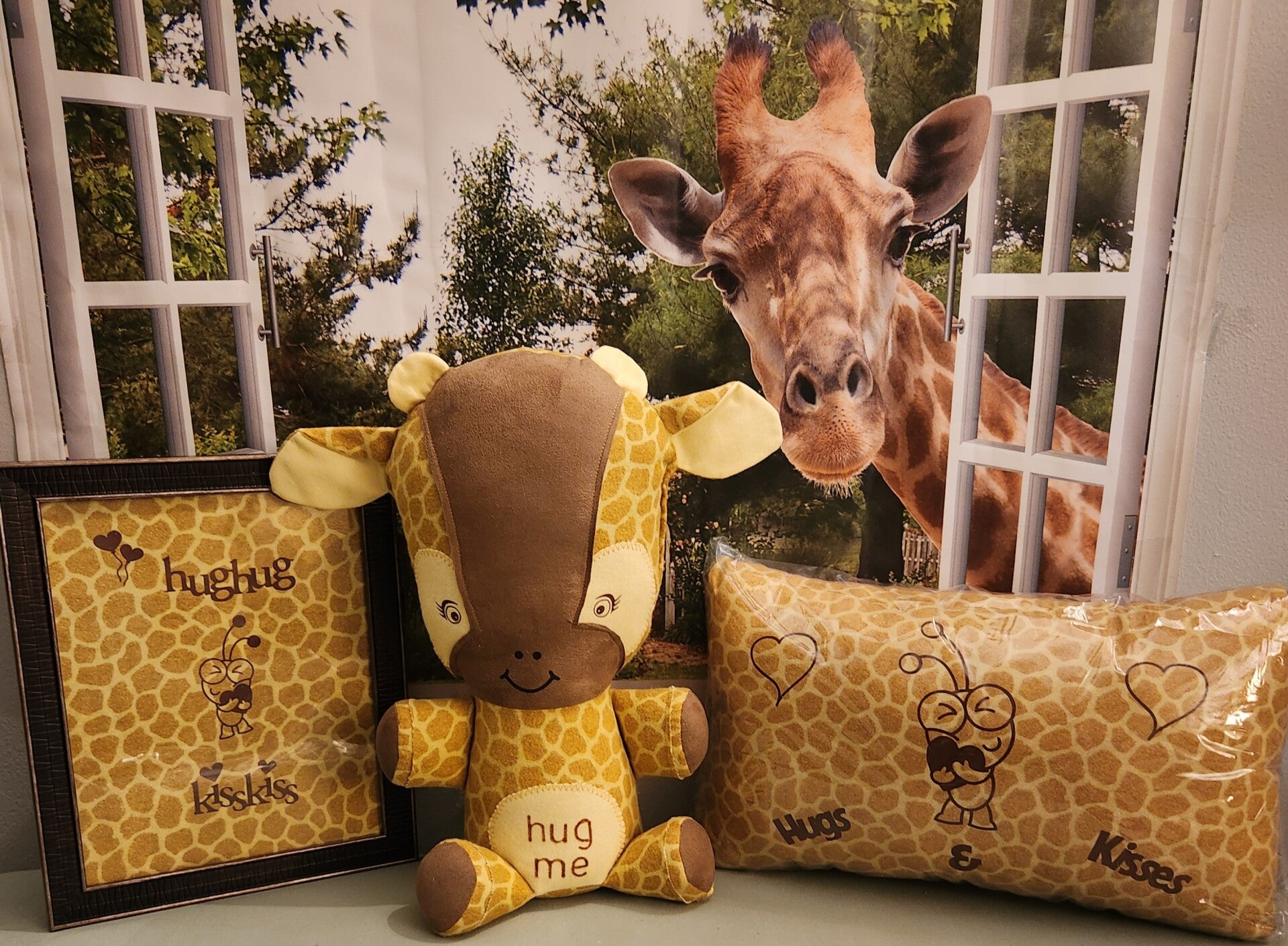 This bundle includes: Lil Big Head plush (13" H), a matching pillow (16" x 11") and a matching picture frame (8" x 10").